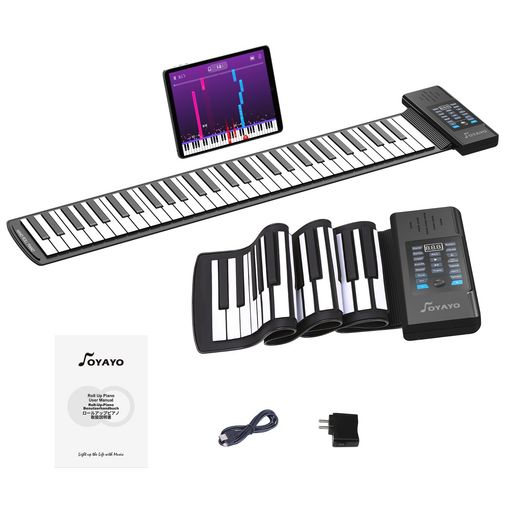 OYAYOロールピアノ61鍵盤ロールアップピアノUSB充電式MIDI対応持ち運び可能128音色128リズム14デモ曲初...