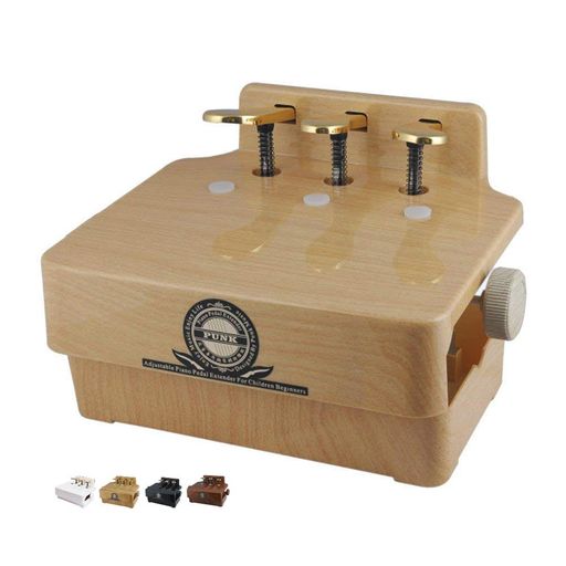 ピアノ補助ペダル、高さ調整可能のピアノペダル、ペダル3つがある(木の色)