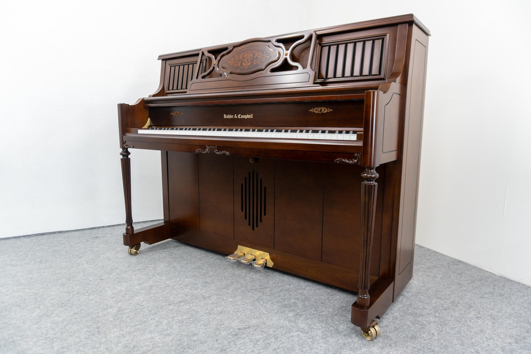 330,000 円 【中古アップライトピアノ】Kohler & Campbell SU-520C|木目調・デザイン彫刻仕上げ 🎹【木目調&彫刻デザイン】上品なウォールナット艶消しと美しい彫刻が特徴 🎹【コンパクトサイズ】奥行61cm・...